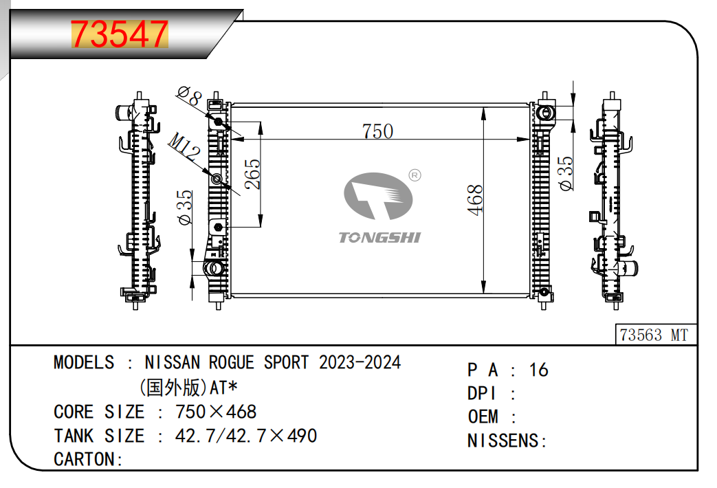 FOR RACTIS 05- AT RADIATOR