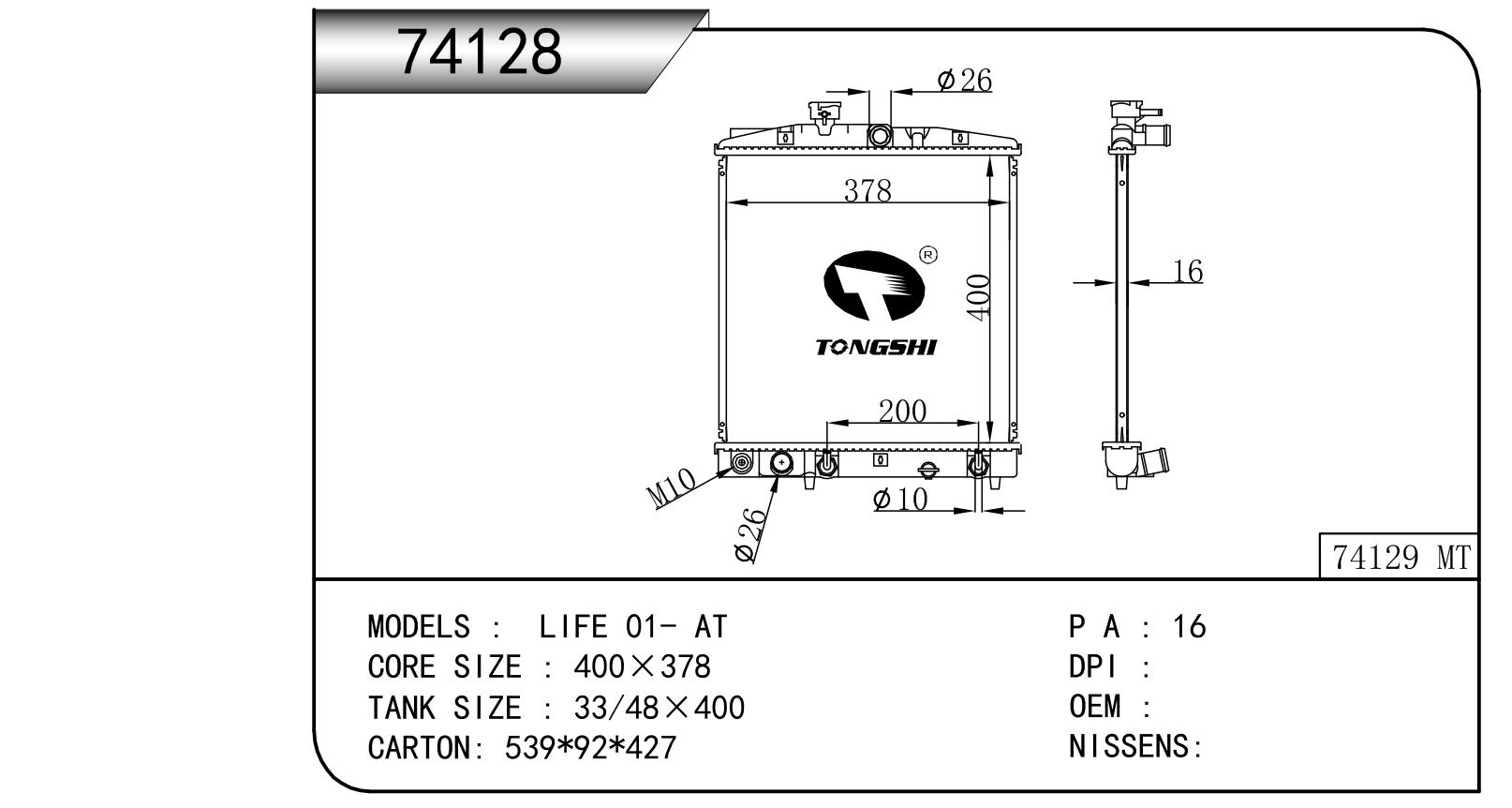 FOR COROLLA ZZE122 AT RADIATOR
