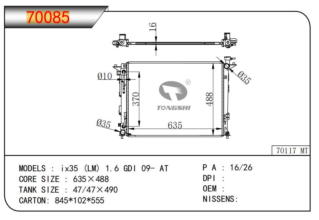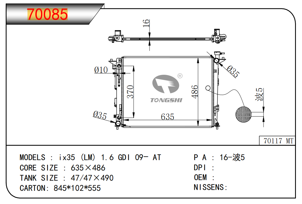 FOR COROLLA ZZE122 AT RADIATOR