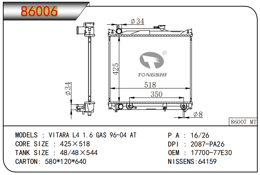 FOR COROLLA ZZE122 AT RADIATOR
