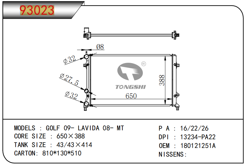FOR COROLLA ZZE122 AT RADIATOR