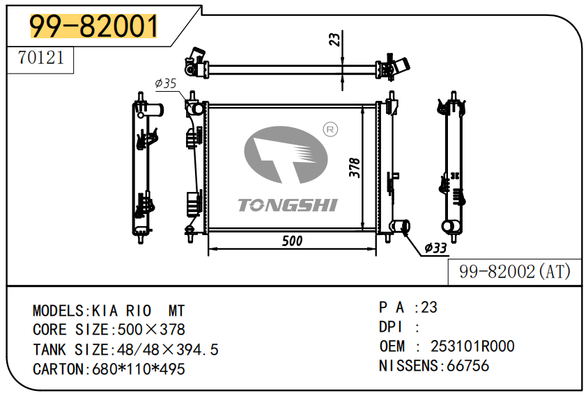 FOR RACTIS 05- AT RADIATOR