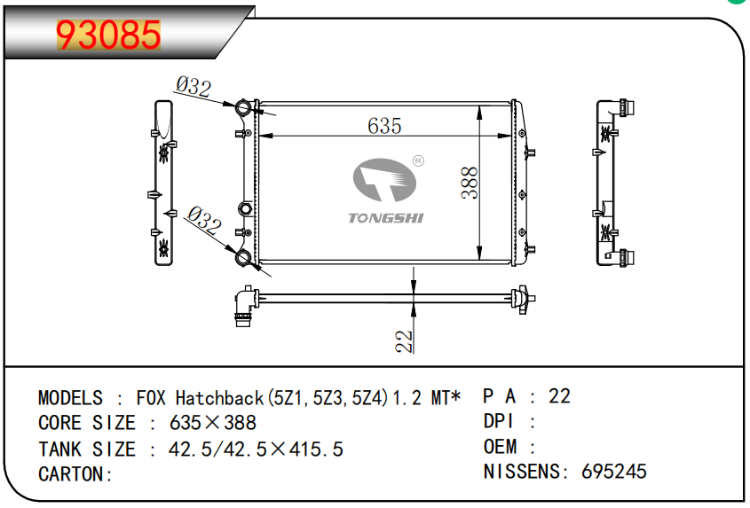 FOR COROLLA ZZE122 AT RADIATOR