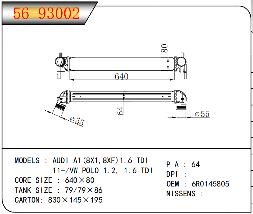 FOR COROLLA ZZE122 AT RADIATOR