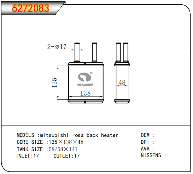 FOR COROLLA ZZE122 AT RADIATOR