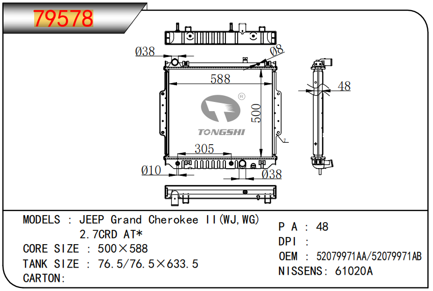 FOR COROLLA ZZE122 AT RADIATOR