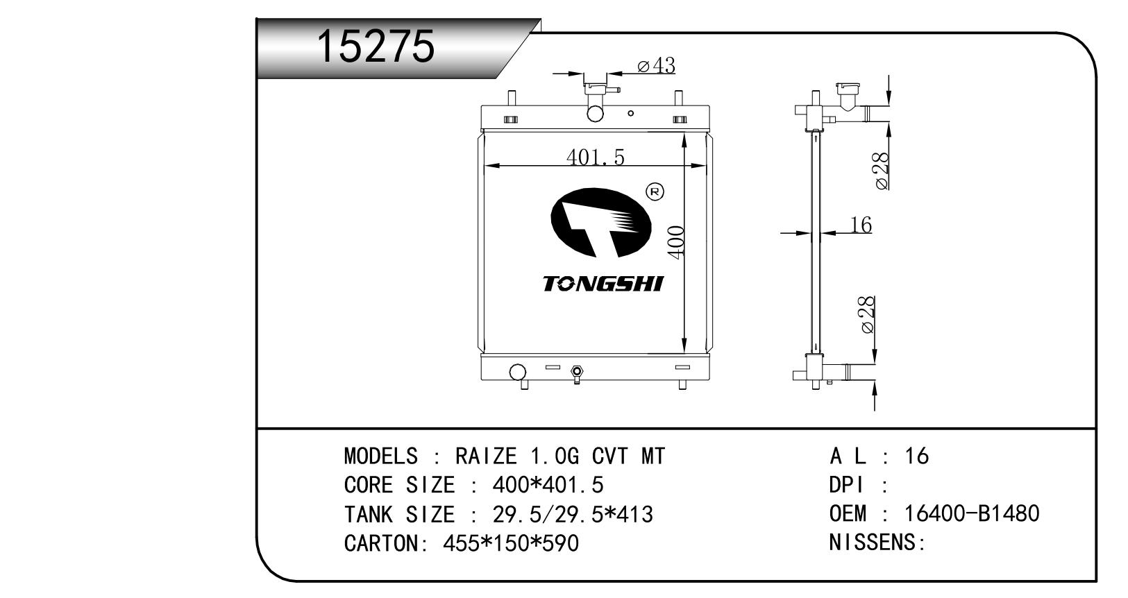 FOR COROLLA ZZE122 AT RADIATOR