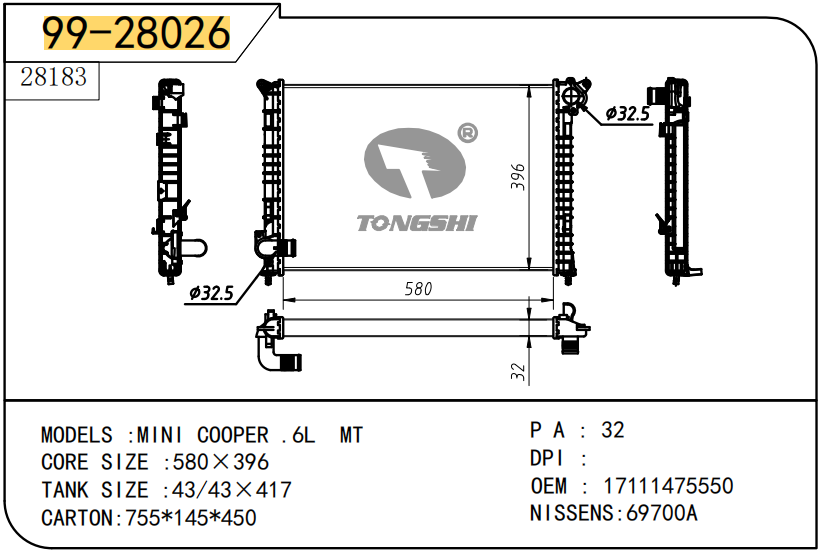 FOR COROLLA ZZE122 AT RADIATOR