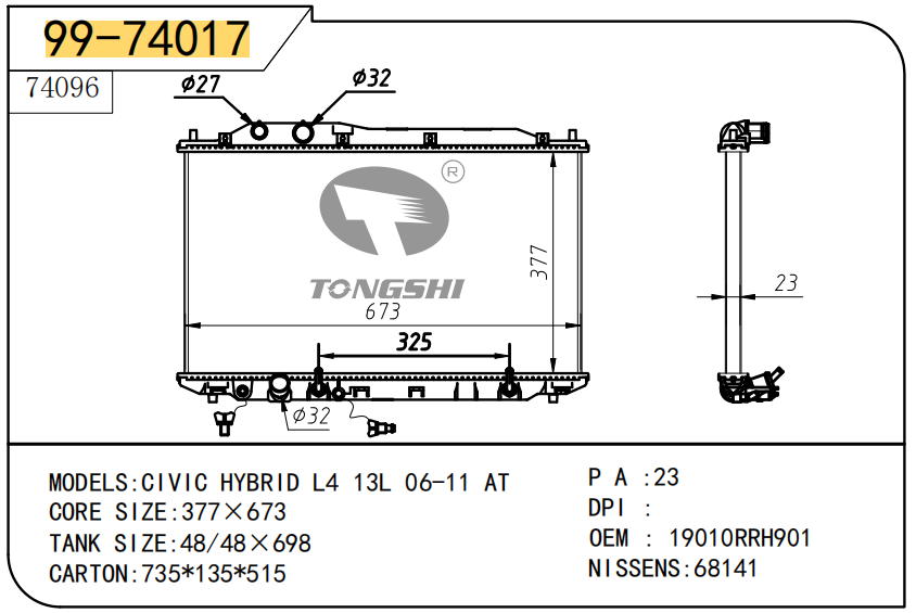 FOR CIVIC DX L4 1.8L 06-11 MT RADIATOR