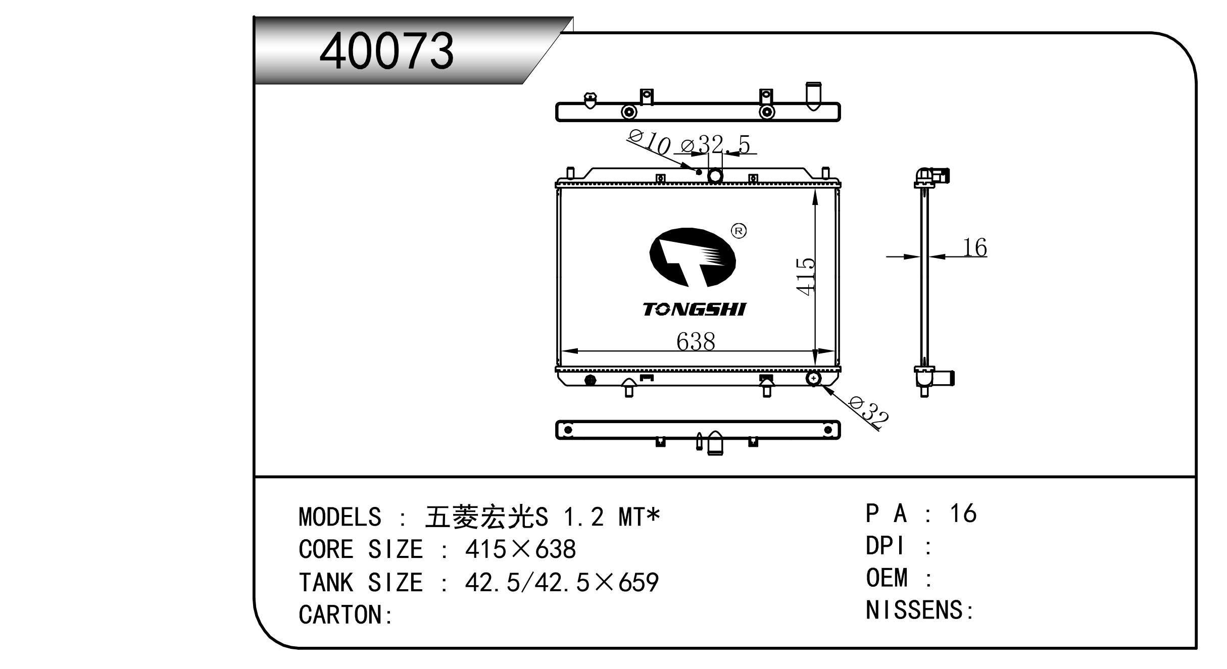 FOR COROLLA ZZE122 AT RADIATOR