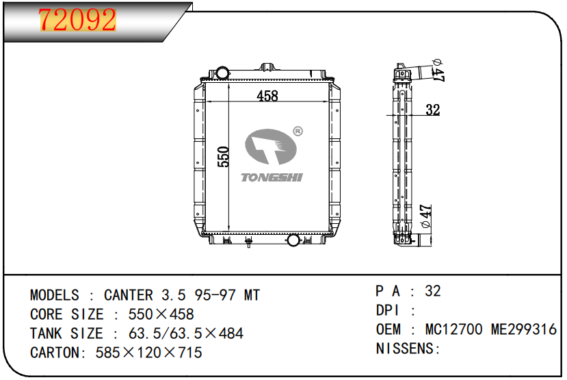 FOR CIVIC DX L4 1.8L 06-11 MT RADIATOR