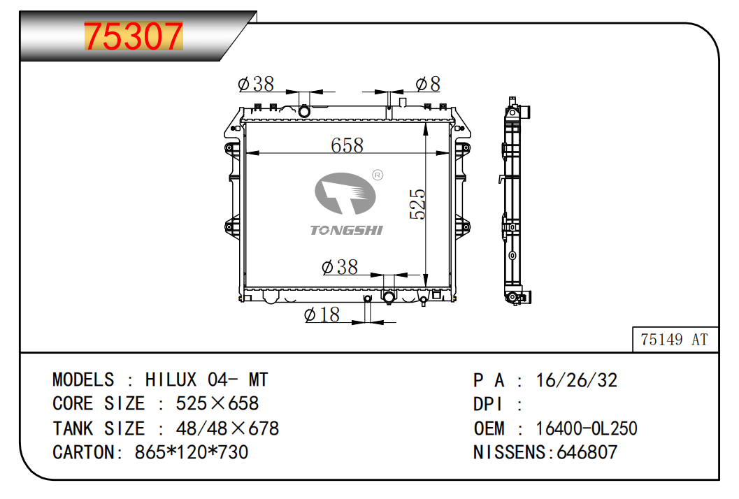 FOR COROLLA ZZE122 AT RADIATOR