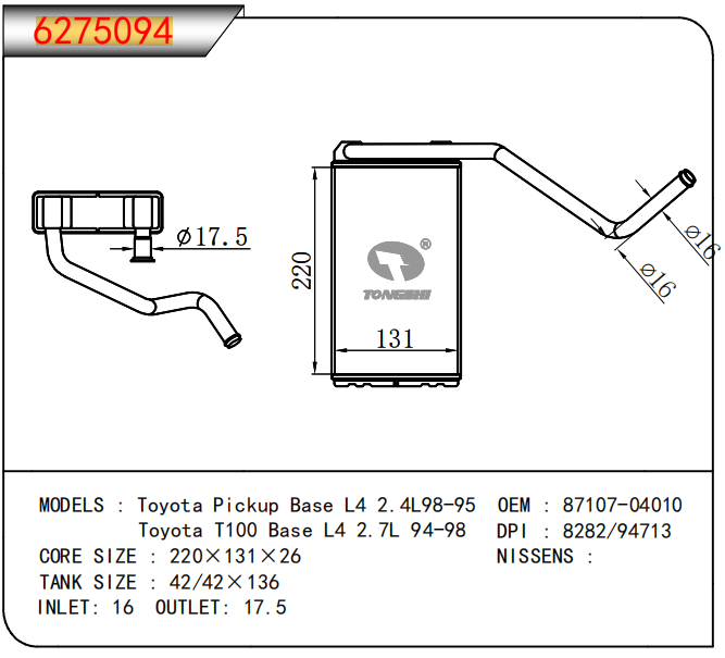 FOR COROLLA ZZE122 AT RADIATOR