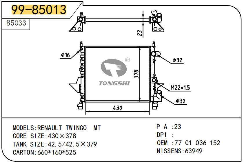 FOR COROLLA ZZE122 AT RADIATOR